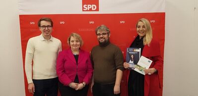 Auf Einladung der SPD Karlsruhe Land und der dortigen Arbeitsgemeinschaft für Bildung (AfB) diskutierten Katja Mast MdB, stv. SPD-Fraktionsvorsitzende im Deutschen Bundestag, Cornelia Spachtholz, Bundesvorsitzende Verband berufstätiger Mütter e. V. (VBM e. V), Christian Holzer, Kreisvorsitzender SPD Karlsruhe-Land und Stephan Walter, Schulleiter und Kreisvorsitzender AG Bildung SPD Karlsruhe-Land zum sogenannten Wechselmodell.